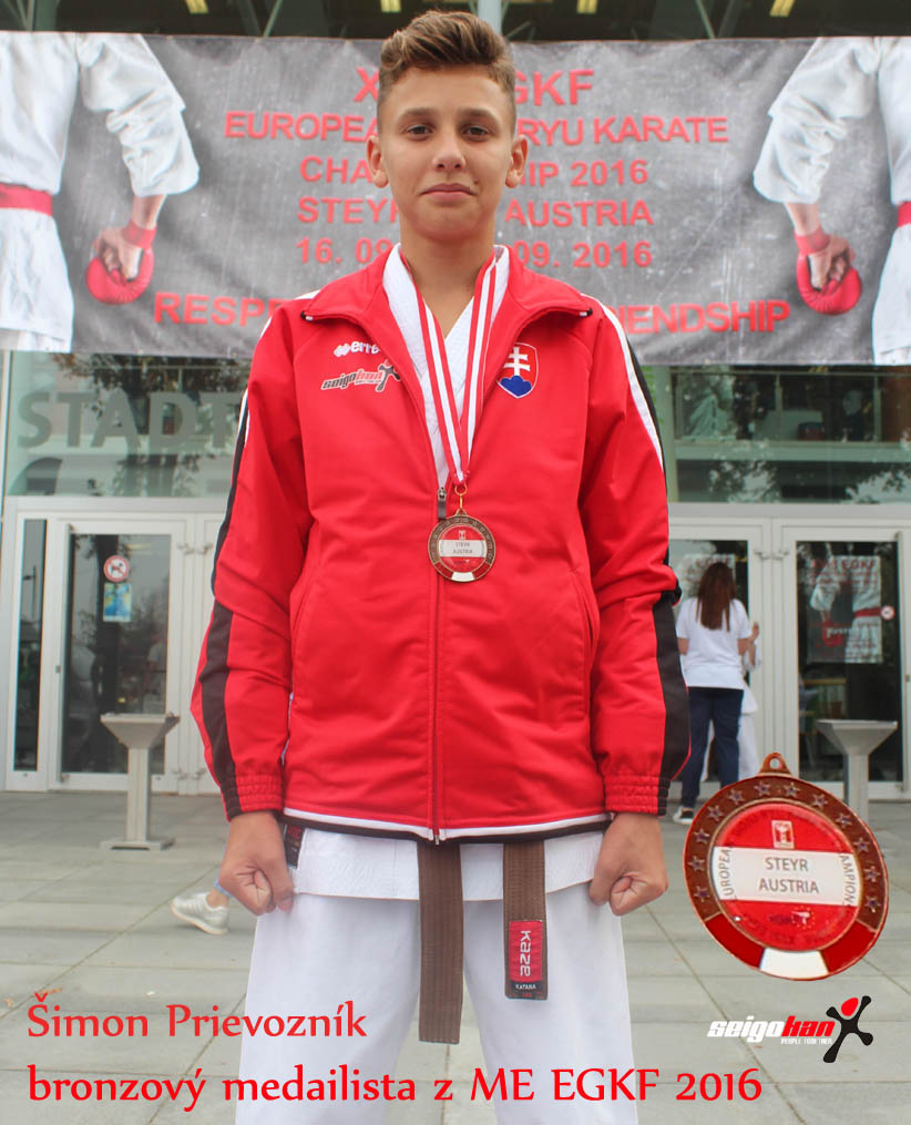 Dvanásťročný karatista z klubu Seigokan Vrbové, Šimon Prievozník získal na Majstrovstvách Európy v karate Goju Ryu v kategórii kata do štrnásť rokov bronzovú medailu!